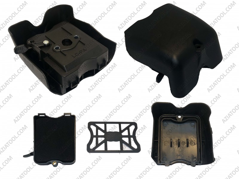 – Корпус воздушного фильтра, вместе с фильтрующим элементом создаёт надежную защиту поршневой группы. Очищая кислород, производит фильтрацию воздуха подаваемого в цилиндр бензокосы. Материал - пластик.